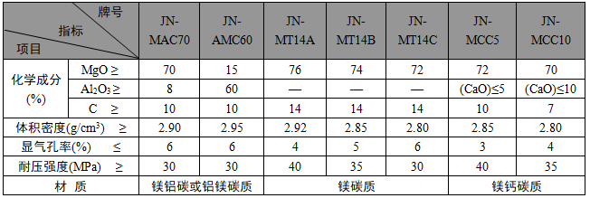 · JN系列鋼包鎂碳磚、鎂鈣碳磚、鎂鋁碳磚主要理化指標 ·