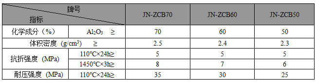 · JN系列中間包永久層澆注料主要理化指標 ·